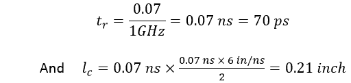 Therefore, signal traces longer than 3/1.5 = 2 inches need to be designed as controlled impedance lines. Note here that tr of 1ns corresponds to a maximal signal frequency: ![]()