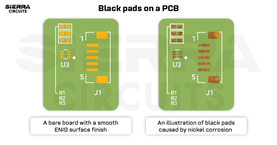 This defect reduces solderability and leads to weak solder joints. When those joints come under pressure, they break easily and leave exposed corroded nickel behind, hence the name black pad.