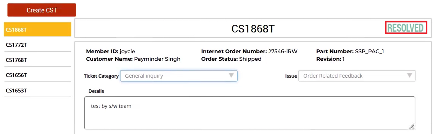 Our engineering team will review your request, address the issue, and provide relevant feedback, which can be seen below your CST and will also be sent through email.