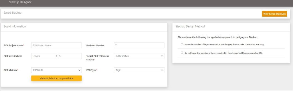 Sierra Circuits’ PCB Stackup Designer helps you create advanced, manufacturable stack-ups in real-time, perfect for high-speed, flex, and complex BGA designs.